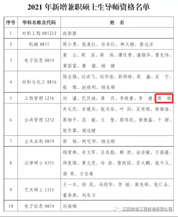获聘为硕士研究生导师一方面是周晓总经理的个人荣誉,另一方面也反映出鼎诚公司的行业优势及工程实践经验得到社会的认可。继南昌航空大学土木建筑学院研究生实践基地成立之后,校企合作又迈出了坚实的一步。2022年,米兰体育将一如既往的承担起应有的社会责任,积极响应政府的人才强省战略,分享工程管理实践经验。与高校共同努力实现校企合作双赢,推动行业及地方经济发展贡献一份力量。